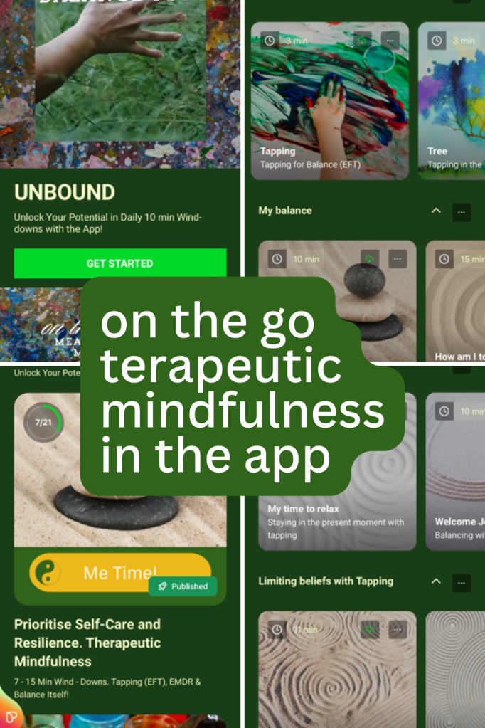 - Over 40 bite-sized recorded guidance, therapeutic mindfulness and tapping, EFT, EMDR & BALANCE.
